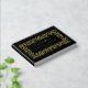 Elegante marco dorado de moda sobre el Relieve metalizado dorado negro Guest Book. Puede agregar su propio texto, nombres, fecha y monogramas (al dorso) para personalizar.