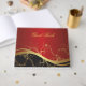Elegante y formal libro de huéspedes de diseño en rojo, dorado y negro.