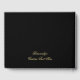 Agregue un estilo personalizado a cualquier evento especial con un libro de invitados hecho a medida. El patrón de corazón elegante romántico negro dorado crea una presentación única de libro de invitados. Personalice con nombres, un mensaje, una cita o lo que desee. El texto de la columna vertebral se puede personalizar o eliminar. Perfecto para una boda, baby shower, graduación, cumpleaños, celebración, aniversario y otras ocasiones especiales. Gran idea para agregar a cualquier evento.