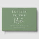 Texto personalizado Cartas personalizadas al guión de novia que dicen elegantes "Cartas a la novia". Un bello aguijón en color verde salado, verde claro, tierra y blanco con un elegante y elegante texto de bloques estilizado y tipografía de caligrafía de escritura. Personalice añadiendo el nombre de la novia y la fecha de la ducha de novia. Hay espacio en la parte trasera del libro para agregar tu propia cita o decir que la novia esté. Perfecto como regalo de las damas de honor, o para un libro de visitas con ducha de novia. También hacer un gran libro de recortes a la novia para atesorar siempre.