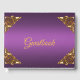 Un libro de invitados de boda muy elegante y con estilo, que presenta un tema de lujo en dorado y púrpura. Tiene una hermosa base metálica púrpura en la parte delantera y trasera, con adornos metálicos dorados brillantes en cada esquina en la parte delantera del libro. El texto en la parte delantera se puede personalizar según sea necesario (o por supuesto, dejarlo como está). Este libro de invitados chic también sería muy adecuado para una variedad de eventos y celebraciones.