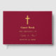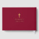 Este elegante libro de Relieves metalizados de verdad hace de este lujoso rincón para una novia y un novio una hermosa manera de expresar su aprecio a los bodas. La cubierta frontal y posterior del libro de visitas presentan la cruz en Relieve metalizado metálico real. Hay un texto de Relieve metalizado metálico real en la portada, en la columna vertebral y en la portada trasera del libro de visitas; el texto es fácil de personalizar en línea antes de realizar el pedido. El fondo de la portada es de color burdeos, sin embargo si desea cambiar el color, haga clic en "Editar usando la herramienta de diseño", luego en "Fondo" en el panel Capas, luego haga clic en "Fondo" y seleccione un color.