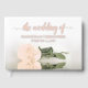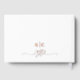 Este hermoso libro de bodas exuera romanticismo, elegancia, clase y estilo. En él se muestra una foto de un solo melocotón pálido de tallo largo o de un rosa de color naranja muy claro sobre su lado reflejado en un estanque de agua con elegantes letras de Relieve metalizado que dicen "el boda de" con sus nombres y fecha de boda. Una forma maravillosa de crear un recuerdo duradero de su día especial.