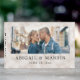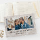 Elegante y romántico libro de bodas personalizado en la parte delantera y trasera con fotos de compromiso de la pareja feliz. El frente y la columna se imprimen con sus nombres y fecha de boda.
