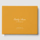 Un libro de huéspedes con una ducha de bebé elegante y sofisticado. Nuestro diseño es sencillo y limpio. Añade el nombre y la fecha de la futura mamita. El moderno fondo amarillo mostaza aporta un toque moderno y audaz. En el reverso aparece un sencillo monograma inicial.