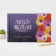 Celebra tu día especial con este libro de bodas conmemorativo de temática floral, que incluye elegantes letras blancas, guirnaldas de coloridas margaritas africanas y confetti de espliego morado sobre un fondo violeta de color morado a negro. Personalizar con los nombres de los recién casados, y fecha de boda. Diseño © W.H. Sim. Ver más en zazzle.com/expressionsoccasions
