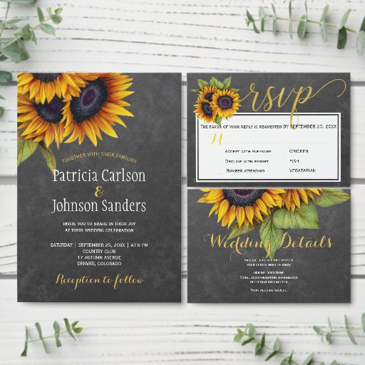Rustic sunflower wedding grey chalkboard suiteDiseñado por Anka Designs