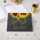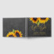 Libro de invitados personalizado de estilo rústico de moda con grandes girasoles dorados amarillos sobre fondo de tipografía de carbón gris oscuro y con un guión elegante de tipografía de oro Ideal para su verano o otoño | elegante campo rústico | boda con temática de patio trasero exterior.