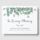 Libro de Huéspedes del Funeral Memorial Eucalyptus Sympathy. Este libro funerario presenta un diseño blanco y moderno de estilo eucalipto, con nombres y fechas. Personaliza la columna con mensaje y nombre. Este elegante y moderno libro de visitas botánico sobre la vegetación es perfecto para el servicio conmemorativo, la celebración de la vida y el funeral. DERECHOS RESERVADOS © 2020 Judy Burrows, Black Dog Art - Todos los derechos reservados. Libro de invitados para el funeral conmemorativo de Eucalyptus