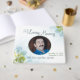 Captura tus sentidos pensamientos y sentimientos acerca de tu difunto ser querido. Con un poema funerario. En la parte de atrás está el poema: Los que amamos permanecen con nosotros Por el amor mismo vive y los recuerdos apreciados nunca se desvanecen Porque los seres queridos que nos hemos ido Los que amamos nunca pueden ser más que un pensamiento aparte mientras haya memoria Siempre vivirán en nuestros corazones Con floral azul y verde, flores y diseño de vectores de follaje.