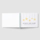 Invite a los clientes de una ducha de bebé a compartir sus deseos y sabiduría con este dulce libro de invitados con cinco estrellas colgantes de una suave acuarela amarilla con "Deseos por el Bebé" debajo. Personalice la cubierta y la columna vertebral con el nombre del invitado y la fecha de ducha, o su elección de texto personalizado. La columna vertebral se muestra en verde neutro de menta; cambie el color de la columna haciendo clic en "personalizar" y seleccionando su elección de color.