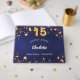 Atractivo fondo azul marino, desigual y con estrellas de oro falsas. Agrega tu nombre y texto. El número de edad se escribe con un tipo de letra de estilo globo. Espina: agrega tu texto.