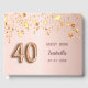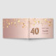 Un libro de visitas para una fiesta glamurosa y glamurosa de 40 años. Un falso fondo dorado rosa con estrellas falsas doradas que gotean. Personalice y agregue un nombre y una fecha. El nombre está escrito en oro rosa oscuro con una escritura de estilo moderno con letras a mano. El número 40 se escribe con un tipo de letra de estilo globo.