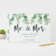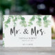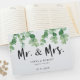 Elegante libro de boda de eucalipto Sr. y Sra. novia y novio. Personalizar este signo cambiando el texto al nombre de la novia y el novio. Presenta el tipo de letra del guión con letras a mano estilo caligrafía.