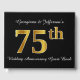 El diseño de este libro de huéspedes incluye el número ordinal "75" con un aspecto falso dorado. También incluye nombres personalizados. Se podría usar para una pareja que celebra su septuagésimo quinto aniversario boda.