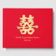 Diseñado especialmente para un boda chino, este libro de bodas presenta una hermosa caligrafía china estilizada en color oro de un símbolo chino tradicional y auspicioso, la "Felicidad doble". La "doble felicidad" escrita xi o "hsi" en mandarín y pronunciada "shuang-xi" es un conocido personaje chino usado tradicionalmente en bodas chinos como símbolo de amor, felicidad y suerte para la recién casada pareja. El uso del color oro simboliza una unión brillante y próspera y el color de fondo rojo que es auspicioso, así como un color popular en la cultura china, simboliza suerte, felicidad y alegría. Un diseño verdaderamente apropiado para cualquier celebración de bodas chinos.
