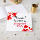 Flores rojas ilustradas con texto que dice: "Gracias por venir a nuestra fiesta de compromiso"
