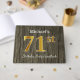 El diseño de este libro de huéspedes incluye el número ordinal "71" con un aspecto de imitación de oro. También tiene un nombre personalizado y un estilo rústico de madera falsa. Se podría usar en un fiesta para alguien que celebre su 71º cumpleaños. [~Z0000053]