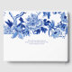 Libro de Invitados de Fiesta de Despedida de Soltera Vintage Pájaros Blancos y Azules Flores y Follaje es un recuerdo elegante. Pintado a mano tradicional vintage inspirado en Asia, diseño floral Chinoiserie con pájaros, ramas y follaje de hojas todo en tonos de azul. Creado por la artista internacionalmente conocida y licenciada, Audrey Jeanne Roberts. Hay un conjunto completo de productos disponibles para combinar. Derechos de autor.