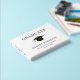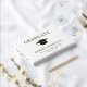 Libro de invitados de fiesta de graduación blanco elegante con tu elección de foil de oro, plata o rosa, una gorra de graduado, "Graduado" y el nombre del graduado, escuela y año de clase en tipografía serif clásica, y su foto en la parte posterior.