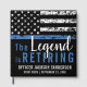 Este diseño incluye una bandera de la fuerza policial con rayas blancas y negras, y una delgada franja azul. El texto de "La leyenda es agotadora" se encuentra por encima del nombre de personalizable del agente de la ley que se retira, sheriff, capitán o jefe. ¡Celebra este hito con estilo!