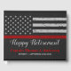 Añada el toque final a su fiesta de retiro de bomberos con estos flacos libros de retiro de bomberos de línea roja y suministros de fiesta. Diseño de la bandera estadounidense en los colores de la bandera de los bomberos, diseño vintage de cuero falso. Esta colección de retiro de bomberos será la favorita. Vea nuestra delgada colección de líneas rojas para igualar invitaciones de retiro para bomberos, regalos para bomberos, favores para fiestas y suministros. DERECHOS RESERVADOS © 2020 Judy Burrows, Black Dog Art - Todos los derechos reservados. Libro de invitado de Fiesta de la delgada línea roja de cuero de retiro para bomberos