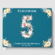 Libro De Visitas Flor 5 cumpleaños Collage de fotos Verde azulado a