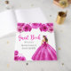 This quinceanera guest book features a beautiful princess in a hot pink ball gown with floral arrangements. This is perfect for a quinceanera birthday party.