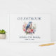 Ave azul bonito y flores rosadas libro de invitados de la fiesta de 50 años de las mujeres personalizadas con el nombre y la edad de la invitada de honor, y su fecha fiesta. Comuníquese conmigo para obtener ayuda con sus personalizaciones o para solicitar productos adicionales de correspondencias o coordinación de Zazzle para su fiesta.