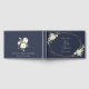 Añada un toque personal a la celebración de la ducha de bebé con estos artículos fiestas de diseño e inolvidables. El diseño está decorado con flores de acuarela blanca, vegetación y marco dorado sobre un fondo azul marino.