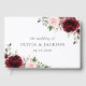 Añada un toque personal a la celebración de su boda con estos artículos fiestas elegantes y memorables. El diseño presenta flores color de agua rosa burdeos y rubio y vegetación en un fondo blanco.
