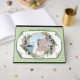 Flores de primavera blancas, amarillas, rosas, amarillas y azules en cestas y ramos de tema estático boda Esta colección viene con un libro de oro para que los bodas firmen