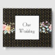 El negro y el dorado con la banda floral crean un ambiente festivo pero elegante. Personalizar con detalles personalizados del boda, recepción u otros eventos especiales