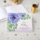 Un hermoso gráfico de color morado de flores y follaje verde es un acento atrevido a este libro de bodas. El texto de estilo manuscrito se utiliza para el texto: Nuestro Boda. El texto personalizado le permite añadir los nombres de la pareja y su fecha boda.
