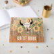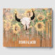 Rústico floral boda occidental girasol amarillo mantiene el libro de invitados para la pareja recién casada. Calavera de toro de vaquero de rodeo con textura de campo de cuernos. Madera granero vintage verde marrón. Diseño de estilo chica de vaca de granja. Buscar productos coincidentes en esta colección. Derechos de imagen de Marg Seregelyi Photography.