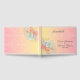 Elegante encaje blanco y flores coloridas sobre fondo rosa degradado y amarillo