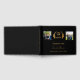 Un fondo negro clásico. Texto dorado. Personalice y agregue 2 fotos, nombre, nombre de la escuela y año. Tanto para él como para ella. El nombre del frente está escrito con un guión de estilo con letras a mano. Decorado con una falsedad de laurel de oro y una gorra.