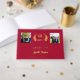 Un fondo rojo, Relieve metalizado dorado. Personalice y agregue 2 fotos, su nombre, clase y nombre de la escuela. Decorada con una corona de laurel y una gorra. Espina: agrega tu propio texto.