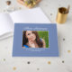 Ahorra tus recuerdos en este perwinkle azul y blanco con una foto de graduación con rayas azules y doradas / libro de visitas senior; es perfecto para que tus invitados firmen en tu fiesta de graduación. Personaliza tu foto, nombre, colegio y año de graduación.