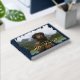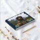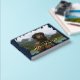 Libro de invitados del servicio conmemorativo azul oscuro con texto de Relieve metalizado dorado impreso sobre una foto de tu ser querido con bordes de pinceladas como si la foto fuera pintada en la portada del libro de visitas del servicio funerario. Añade el nombre de tu ser querido en letras en negrita de Relieve metalizado dorado con en memoria amorosa en un guión retro de Relieve metalizado dorado. Fotos conmemorativas en azul oscuro y oro, libro personalizado con nombre y años de vida. En la memoria amorosa, libro de visitas con fotos para el funeral de tu ser querido o servicio conmemorativo personalizado con foto y texto personalizado.