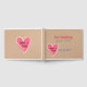 El original libro de bodas hecho en casa con un fondo de trabajo de artesanía, con un corazón rosa delineado de blanco. Grafiti coloridos como la tipografía le dan a este libro un toque casero. Personalice todo el texto que se ajuste a sus necesidades de boda.