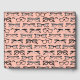 Este libro de huéspedes presenta una variedad de anteojos y marcos de gafas en blanco y negro sobre un rosa pálido.