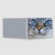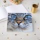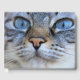 Este diseño presenta una imagen adorable de un gato mirando con determinación a la cámara. Tiene un hermoso abrigo gris de piel.
