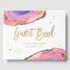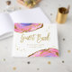 Este elegante y moderno libro de bodas cuenta con piedras geolocalizadas de color rosa y azul, con letras y acentos falsos de oro manuscritos.