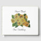 Elegante ramo de girasol en tonos amarillos con hojas verdes y ramas doradas. Diseño perfecto para un Boda floral.