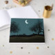 Este diseño presenta un encantador ilustracion de una luna creciente sostenida sobre una cuerda, como si fuera un globo. Un chica se sienta en un banco de un parque sosteniendo la cuerda.