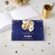 Un fondo azul marino de color desigual decorado con globos dorados. Purpurina de plata falsa. Personaliza y tu foto, nombre y fecha.
