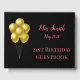 Un libro de cumpleaños perfecto para un 21er cumpleaños moderno, glamoroso, con temas rosa y negro, con globos de oro funky y un fondo a medida. El texto y el color de fondo pueden personalizarse completamente.