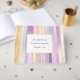 Gold Lavender Purple Stripes personalized wedding guest book with love is patient, love is kind, your names and wedding date