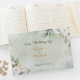 Disfrute de los recuerdos de su día especial con nuestro Graceful Greenery Wedding Hotel Guest Book. Este exquisito diseño presenta una impresionante mezcla de flores de rosa blanca y de vegetación eucaliptus fresco, creando un encantador anticipo de tu celebración. Graceful acuarelas rosas blancas y ramas de eucalipto enmarcan suavemente la inscripción central con tu nombre, complementando perfectamente el estilo boho de tu tema boda. Ideal para novias con un ojo en la elegancia, este libro de bodas de la recepción realza sin esfuerzo un esquema de color verde, blanco y dorado, añadiendo un toque de sofisticación a su decoración boda. Personalice este encantador diseño para que sea exclusivo de su cliente, y permita que sus huéspedes compartan sus deseos y recuerdos. Con su cautivadora obra de arte floral y elegante estilo, nuestro elegante libro de invitados de la recepción de bodas de verde es la manera perfecta de marcar el tono para su ocasión especial.